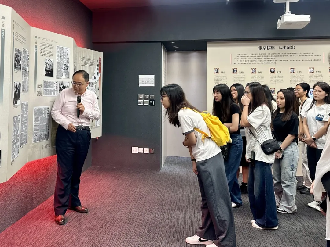 下午的走訪活動第一站就參觀了《大公報》及《文匯報》報史館,了解兩報的發展歷史。透過歷史圖片展,同學們認識到大文集團傳承至今的「忘己之為大,無私之謂公」、「文以載道,匯則興邦」的辦報精神,也體會到集團愛國愛港的辦報傳統。